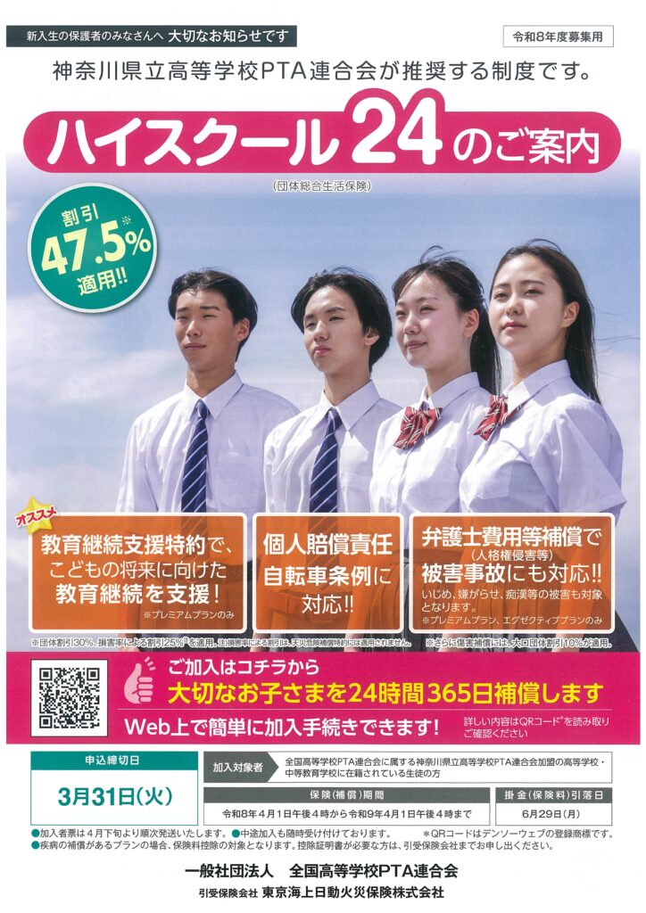※すでにご契約済みの方は在校中は自動継続となりますので、新規のお手続きは不要